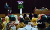 Gubernur Jawa Barat Ridwan Kamil menyampaikan sambutan usai pelantikan anggota DPRD Provinsi Jawa Barat terpilih pada Rapat Paripurna DPRD Provinsi Jawa Barat, di Gedung Merdeka, Jalan Asia Afrika, Kota Bandung, Senin (2/9). (FOTO : Republika/Edi Yusuf)
