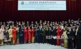 Gubernur Jawa Barat Ridwan Kamil berfoto bersama para anggota DPRD Provinsi Jawa Barat terpilih yang baru dilantik usai Rapat Paripurna DPRD Provinsi Jawa Barat, di Gedung Merdeka, Jalan Asia Afrika, Kota Bandung, Senin (2/9). (FOTO : Republika/Edi Yusuf)