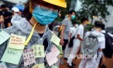 REPUBLIKA.CO.ID, HONG KONG -- Beberapa siswa sekolah menengah atas Hong Kong mengenakan masker, kaca mata pengaman, dan helm. Dengan masih mengenakan seragam yang berwarna putih mereka melakukan mogok sekolah di hari pertama tahun ajaran baru. Sebuah protes untuk menunjukkan komitmen mereka terhadap gerakan anti-pemerintah.