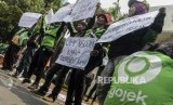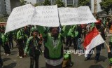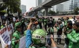 REPUBLIKA.CO.ID, JAKARTA -- Seratusan pengemudi Gojek berunjukrasa di depan Kedubes Malaysia di Jakarta, Selasa (3/9). Mereka memprotes ucapan pengusaha taksi Malaysia yang dianggap melecehkan Indonesia dan profesi ojek online.