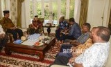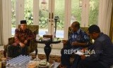 Wakil Presiden terpilih Maruf Amin (kedua kiri) berbincang dengan Ketua Perwakilan Pendeta Papua Richard Tonjau (ketiga kiri) dan Ketua Gerakan Nasionalis Religius Bobby S. Hendrawan (kiri) saat melakukan pertemuan di Jakarta, Kamis (5/9). (FOTO : Republika/Putra M. Akbar)