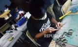 Pengerjaan rantai jam tangan kayu Matoa dilakukan secara manual, di Matoa House, di Jalan Setrasari Kolon III, Kota Bandung, Rabu (4/9). (FOTO : Republika/Edi Yusuf)