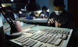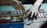 Jam tangan kayu Matoa setengah jadi diperiksa dulu sebelum diisi mesin, di Matoa House, di Jalan Setrasari Kolon III, Kota Bandung, Rabu (4/9). (FOTO : Republika/Edi Yusuf)