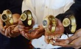 Produk jam tangan kayu tahan air Matoa Singo diperlihatkan oleh para kreatornya, di Jalan Setrasari Kolon III, Kota Bandung, Rabu (4/9). (FOTO : Republika/Edi Yusuf)