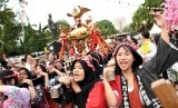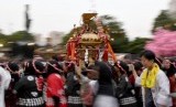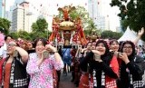 Sejumlah peserta mengikuti parade "Mikoshi" saat pagelaran Jak-Japan Matsuri 2019 di Parkir Tenggara, kompleks Gelora Bung Karno (GBK), Senayan, Jakarta, Sabtu (7/9/2019). (FOTO : ANTARA FOTO)