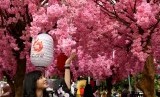 Seorang pengunjung dengan mengenakan pakaian tradisional Jepang (Kimono) berpose saat pagelaran Jak-Japan Matsuri 2019 di Parkir Tenggara, Kawasan Gelora Bung Karno (GBK), Senayan, Jakarta, Sabtu (7/9/2019). (FOTO : ANTARA FOTO)