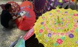 Festival Payung Indonesia. Perupa menggambar payung saat Festival Payung Indonesia 2019 di Candi Prambanan, Klaten, Jawa Tengah, Ahad (8/9/2019). (FOTO : Republika/ Wihdan)