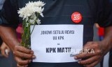 REPUBLIKA.CO.ID, JAKARTA -- Pegawai Komisi Pemberantasan Korupsi (KPK) melakukan aksi "Seribu Bunga SaveKPK" di Kawasan Bundaran HI, Jakarta, Ahad (8/9). Aksi tersebut merupakan reaksi terhadap draf RUU perubahan Undang-undang Nomor 30 Tahun 2002 tentang Komisi Pemberantasan Korupsi yang dinilai akan melemahkan KPK.