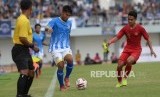 Timnas U23 Juara Trofeo HB X. Pemain Timnas U23 Irkam Mila merebut bola dari pemain PSIM pada pertandingan Trofeo HBX 2019 di Stadion Mandala Krida, Yogyakarta, Ahad (8/9/2019). (FOTO : Republika/ Wihdan)