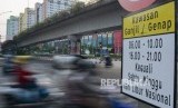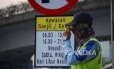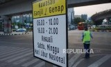 Petugas mengatur lalu lintas dikawasan yang akan terkena dampak perluasan ganjil genap di Jalan Salemba Raya, Jakarta, Minggu (8/9/2019). (FOTO : Republika)