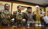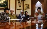 Ketua Umum PBNU, KH Said Aqil Siroj bersama tokoh lintas agama dan iman menyampaikan pernyataan sikap untuk Papua damai di gedung PBNU, Jakarta, Senin (9/9). (FOTO : Republika/Fuji E Permana)