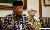 Ketua Umum Pengurus Besar Nahdlatul Ulama (PBNU) KH. Said Aqil Siroj (kiri), Rohaniawan Katolik Franz Magnis Suseno (kanan) menyampaikan pernyataan sikap pada acara pertemuan tokoh bangsa lintas iman untuk papua damai di Gedung Pengurus Besar Nahdlatul Ulama, Jalan Kramat Raya, Jakarta, Senin (9/9/2019). (FOTO : Thoudy Badai)