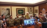 Ketua Umum Pengurus Besar Nahdlatul Ulama (PBNU) KH. Said Aqil Siroj bersama tokoh lintas agama menyampaikan pernyataan sikap pada acara pertemuan tokoh bangsa lintas iman untuk papua damai di Gedung Pengurus Besar Nahdlatul Ulama, Jalan Kramat Raya, Jakarta, Senin (9/9/2019). (FOTO : Thoudy Badai)