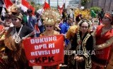 REPUBLIKA.CO.ID, JAKARTA -- Sejumlah massa yang pro maupun kontra terhadap revisi Undang-Undang Nomor 30 Tahun 2002 tentang Komisi Pemberantasan Tindak Pidana Korupsi bersuara di Gedung DPR RI, Selasa (10/9). Mereka menyuarakan pro dan kontra mereka di dalam dan luar gedung.