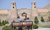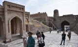 Pengunjung melihat benteng Hisor yang berada di komplek kota tua Hisor (Hissar), Tajikistan, Selasa (10/9/2019). (FOTO : Antara/Prasetyo Utomo)