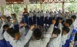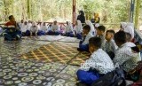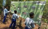 Pelajar dari Sekolah Dasar Negeri 3 Bukit Batu saat beraktivitas di Arboretum Gambut Marsawa, Sei Pakning,Kecamatan Bukit Batu, Bengkalis, Riau, Rabu (11/9). (FOTO : Republika/Putra M. Akbar)