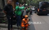 Sejumlah masyarakat menunggu dan mengabadikan iring-iringian mobil yang membawa jenazah almarhum Presiden ke-3 BJ Habibie di Kawasan Patra Kuningan, Jakarta, Kamis (12/9). (FOTO : Republika/Prayogi)