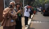 Sejumlah masyarakat menunggu dan mengabadikan iring-iringian mobil yang membawa jenazah almarhumah Presiden ke-3 BJ Habibie di Kawasan Patra Kuningan, Jakarta, Kamis (12/9). (FOTO : Republika/Prayogi)