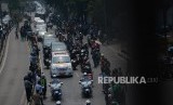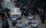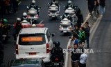 Iring-iringan kendaraan yang membawa jenazah almarhum Presiden ke-3 Republik Indonesia BJ Habibie melintas di Jalan HR Rasuna Said, Jakarta, Kamis (12/9/2019). (FOTO : /Dhemas Reviyanto)