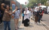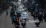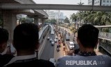 REPUBLIKA.CO.ID, JAKARTA -- Warga menyaksikan iring-iringan mobil jenazah yang membawa almarhum Presiden ketiga Republik Indonesia BJ Habibie menuju Taman Makam Pahlawan Nasional Utama Kalibata di Jalan Gatot Subroto, Jakarta, Kamis (12/9/2019).