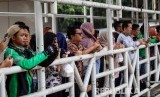 Warga menyaksikan iring-iringan mobil jenazah Presiden Republik Indonesia ke-3 Bj.Habibie melintas di Kawasan Jalan Gatot Soebroto, Jakarta, Kamis (12/9/2019). (FOTO : Thoudy Badai)