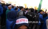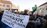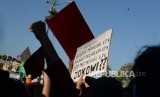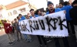 REPUBLIKA.CO.ID, YOGYAKARTA -- Mahsiswa dari berbagai perguruan tinggi Yogyakarta menggelar aksi di titik nol, Yogyakarta, Kamis (12/9/2019). Mereka menuntut pemerintah menolak pembahasan RUU KPK oleh DPR.
