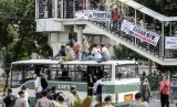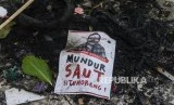 Massa aksi membubarkan diri pasca kericuhan di depan gedung KPK, Jakarta, Jumat (13/9). (FOTO : Republika/Putra M. Akbar)