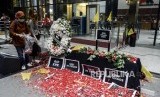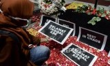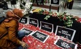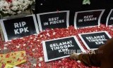 REPUBLIKA.CO.ID, JAKARTA -- Pegawai KPK menabur bunga ke keranda mayat di Gedung KPK, Jakarta, Jumat (13/9).