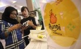 Pengunjung mencoba aplikasi untuk mengenalkan pendapatan negara Pundi Uang Kita saat Ministry of Finance Festival (Mofest) 2019 di Surabaya, Jawa Timur, Sabtu (14/9/2019). (FOTO : ANTARA FOTO)