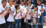 Pemimpin Divisi Bank DKI dan pengurus Baznas Bazis DKI Jakarta, berfoto dengan penerima santunan sebesar dalam bentuk tabungan Monas iB Bank DKI Syariah dalam Lebaran Anak Yatim di Jakarta (14/09). Bank DKI melalui Unit Usaha Syariah mengelola 1.000 rekening tabungan anak yatim penerima santunan tersebut. (FOTO : Bank DKI )