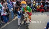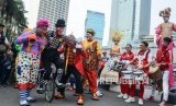 REPUBLIKA.CO.ID, JAKARTA -- Seniman badut yang tergabung dalam Aku Badut Indonesia menghibur masyarakat pada Hari Bebas Kendaraan Bermotor (HBKB) di Kawasan Bundaran HI, Jakarta, Ahad (15/9/2019). Kegiatan tersebut merupakan acara galang dana untuk anak penderita kanker.