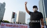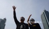 Persatuan Masyarakat Riau Jakarta melakukan aksi Melawan Asap saat Hari Bebas Kendaraan Bermotor (HBKB) di kawasan Bundaran HI, Jakarta, Ahad (5/9/2019). (FOTO : Republika)