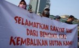 Aksi tersebut merupakan bentuk peduli terhadap kondisi Hutan Riau yang rusak akibat terbakar, serta menuntut pihak terkait untuk segera mengatasi kerusakan alam tersebut.