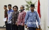 Ketua KPK Agus Rahardjo (kanan) bersama Wakil Ketua KPK Laode M Syarif, Basaria Panjaitan dan Alexander Marwata saat menghadiri pelantikan pejabat struktural di Gedung Merah Putih KPK, Jakarta, Senin (16/9). (FOTO : Republika/Putra M. Akbar)