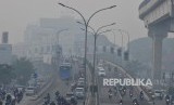 REPUBLIKA.CO.ID, PALEMBANG -- Ruas jalan di Kota Palembang, Sumsel, Senin (16/9/2019), diselimuti kabut asap.