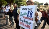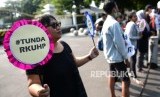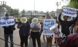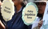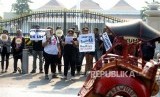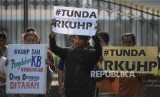 REPUBLIKA.CO.ID, YOGYAKARTA -- Peserta aksi dari Aliansi Reformasi KUHP Yogyakarta menggelar aksi di depan Gedung Agung, Yogyakarta, Senin (16/9/2019).