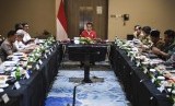 Presiden Joko Widodo memimpin rapat terbatas penanganan kebakaran hutan dan lahan (karhutla) di Pekanbaru, Riau, Senin (16/9/2019). (FOTO : ANTARA FOTO)