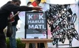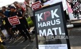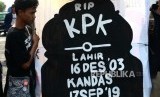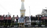 REPUBLIKA.CO.ID, YOGYAKARTA -- Peserta aksi dari Jaringan Anti Korupsi (JAK) Yogyakarta menggelar unjuk rasa di Tugu Yogyakarta, Selasa (17/9/2019).