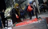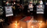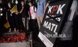 REPUBLIKA.CO.ID, JAKARTA -- Selepas matahari terbenam, sejumlah elemen masyarakat dan aktivis antikorupsi berkumpul di Gedung KPK. Usai azan Isya berkumandang, satu persatu pegawai KPK, keluar dari Gedung sambil mengibarkan bendera kuning pertanda kematian.