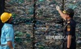REPUBLIKA.CO.ID, JAKARTA -- Dirjen Bea Cukai Heru Pambudi memeriksa kontainer yang berisikan limbah plastik di Pelabuhan Peti Kemas Koja, Jakarta, Rabu,(18/9).