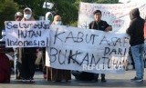 Mereka menuntut pemerintah bertanggung jawab atas kebakaran lahan oleh perusahaan di Sumatra dan Kalimantan.