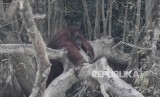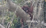 REPUBLIKA.CO.ID, PALANGKA RAYA -- Seekor orang utan (Pongo pygmaeus) berada di lokasi pra-pelepasliaran di Pulau Kaja, Sei Gohong, Palangka Raya, Kalimantan Tengah, Kamis (19/9/2019).