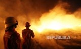 Petugas memadamkan api yang membakar gudang plastik bekas di Rawa Bokor, Kota Tangerang, Banten, Kamis (19/9/2019). (FOTO : Antara/Fauzan )
