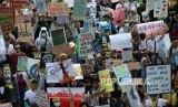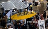 REPUBLIKA.CO.ID, JAKARTA -- Sejumlah aktivis peduli lingkungan melakukan aksi long march peduli iklim di Jalan Merdeka Barat, Jakarta, Jumat (20/9).
