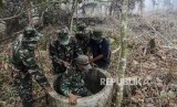 Sejumlah anggota TNI Kodim 0301/Pekanbaru saat mengecek sumber air yang digunakan untu memadamkan api yang menjalar di lahan gambut di kawasan Riau Ujung, Pekanbaru, Riau, Jumat (20/9). (FOTO : Republika/Putra M. Akbar)