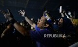 Penonton ikut bernyanyi saat konser tunggal penyayi Didi Kempot bertajuk The Godfahter of Broken Heart Konangan Concert di Jakarta, Jumat (20/9). (FOTO : Republika/Edwin Dwi Putranto)
