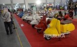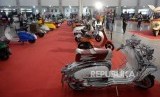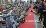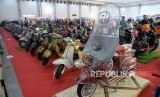 REPUBLIKA.CO.ID, YOGYAKARTA -- Pengunjung mengamati motor skuter lawas yang dipamerkan saat Indonesian Scooter Festival 2019 di Jogja Expo Centre (JEC), Yogyakarta, Ahad (22/9/2019).