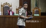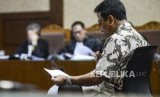 REPUBLIKA.CO.ID, JAKARTA -- Terdakwa kasus dugaan suap jual beli jabatan di lingkungan Kementerian Agama Romahurmuziy saat menjalani sidang di Pengadilan Tipikor, Jakarta, Senin (23/9).