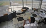 Petugas Air Traffic Control (ATC) memandu keberangkatan pesawat udara di Bandara Internasional Minangkabau (BIM), Padangpariaman, Sumatera Barat, Senin (23/9/2019). (FOTO : Antara/Iggoy el Fitra)