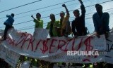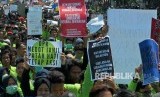REPUBLIKA.CO.ID, SEMARANG -- Ribuan mahasiswa dari berbagai perguruan tinggi berunjuk rasa menolak UU KPK hasil revisi dan RUU KUHP, di depan Gedung DPRD Jateng, Semarang, Jawa Tengah, Selasa (24/9/2019).